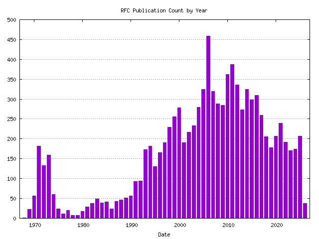 RFC Publication Statistics RFCs9953 STANDARD DRAFTS76 PROPOSED3753 BCP273 INFORMATIONAL2769 EXPERIMENTAL455 HISTORIC197 OBSOLETED NO CATEGORY1012 INTERNET DRAFTS ALL318686 All VERSIONS466252